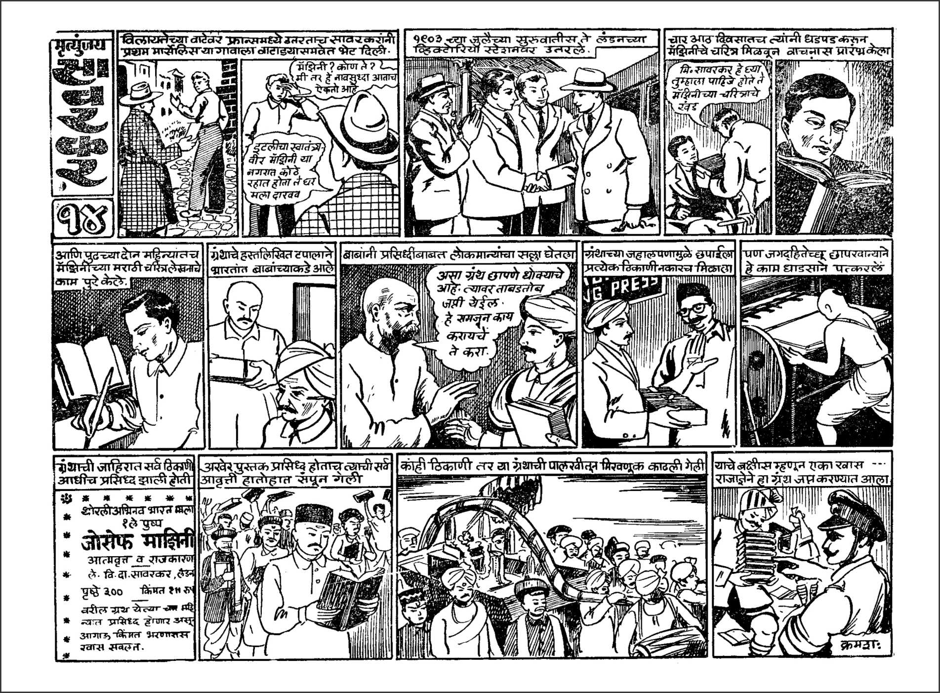 Artist Madhukar V. Sowani has drawn a Pictorial Biography of Swatantryaveer Vinayak Damodar Savarkar in this Mrutunjay Savarkar Chitramay Charitra book. Also the major events that happened in his life are briefly given.