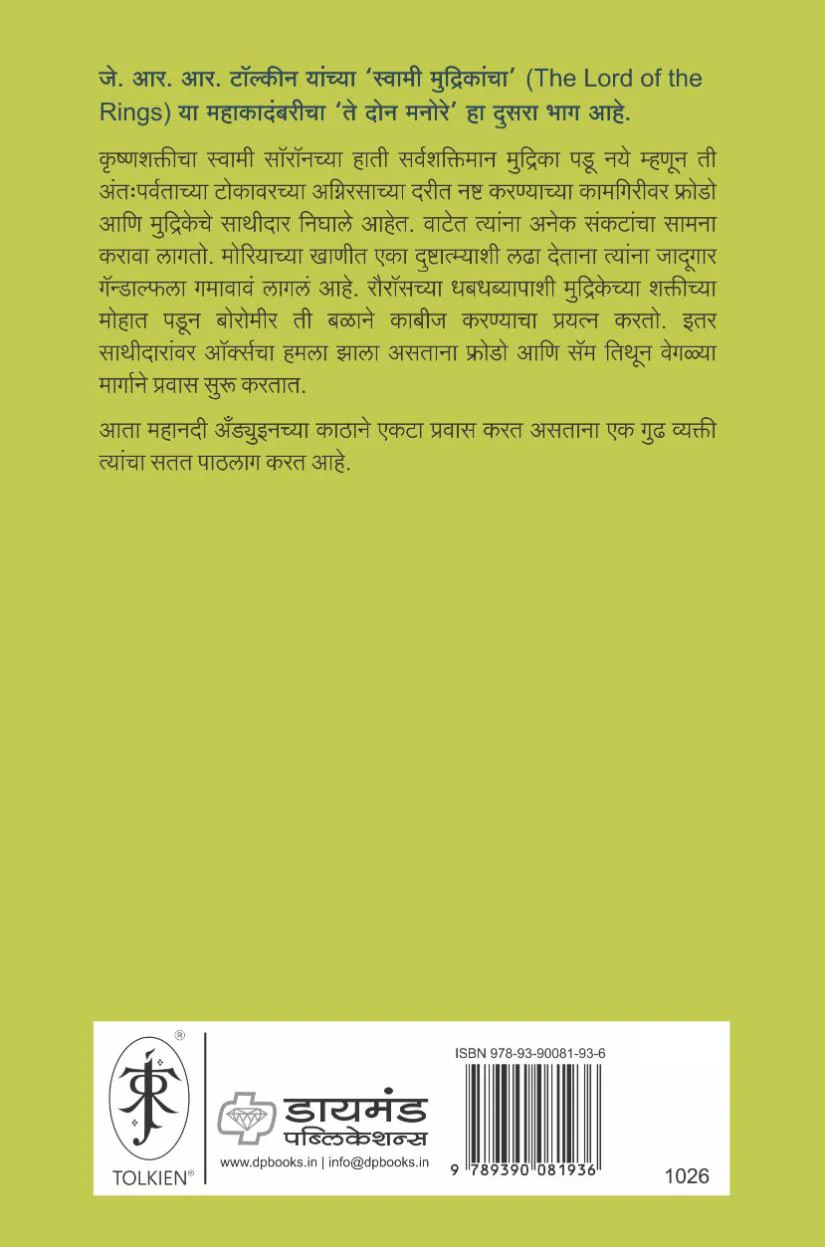 Marathi translation of The Two Towers by J R R Tolkien. Translated in Marathi by Mughda Karnik.